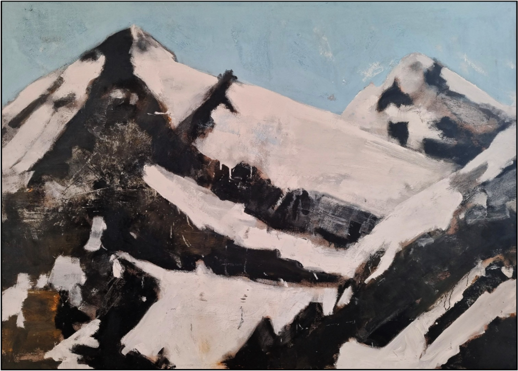 FRANGI GIOVANNI Milano 1959 “Monte Moro” olio su tela cm 180x130 del 2003. Sul retro firmato, intitolato e datato. Autentica su foto a cura dell’artista e foto del maestro con l’opera.
