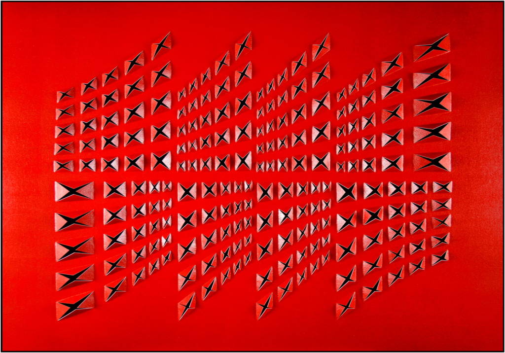 PIACCIONE GIANLUCA Taranto 1971 “Red dends” acrilici su doppia tela tagliata e piegata applicata su tavola cm 100x70 del 2018. Al retro titolo, firma, data, numero d’archivio e timbro. Archiviazione su foto a cura dell’artista.