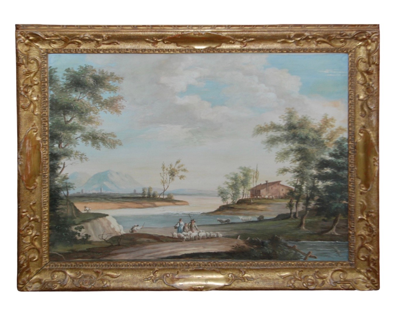 Precedente Lotto 44 Successivo Casa d'Aste Martini - C.so Cavallotti 76, 18038 Sanremo Asta antiquariato, dipinti, design e arte orientale Sessione unica giovedì 9 giugno 2022 ore 15:00 (UTC +01:00) DIPINTO tempera su carta raff.paesaggio Veneto sec XVIIIcm. 63x50 5