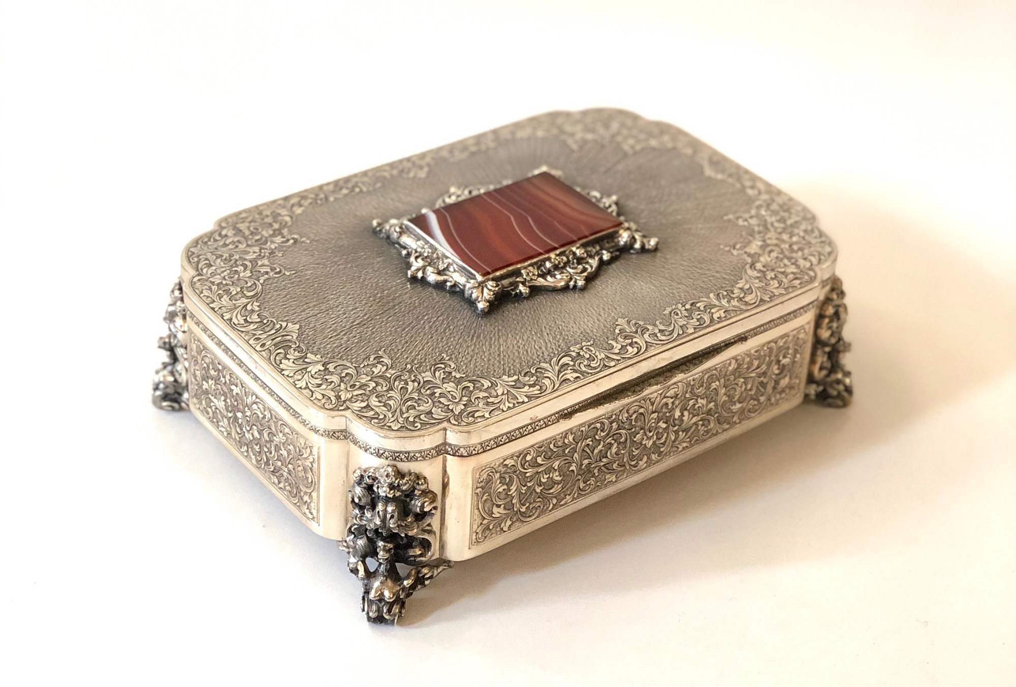 scatola in argento finemente lavorata con pietra semipreziosa incastonata gr.1159 lordi