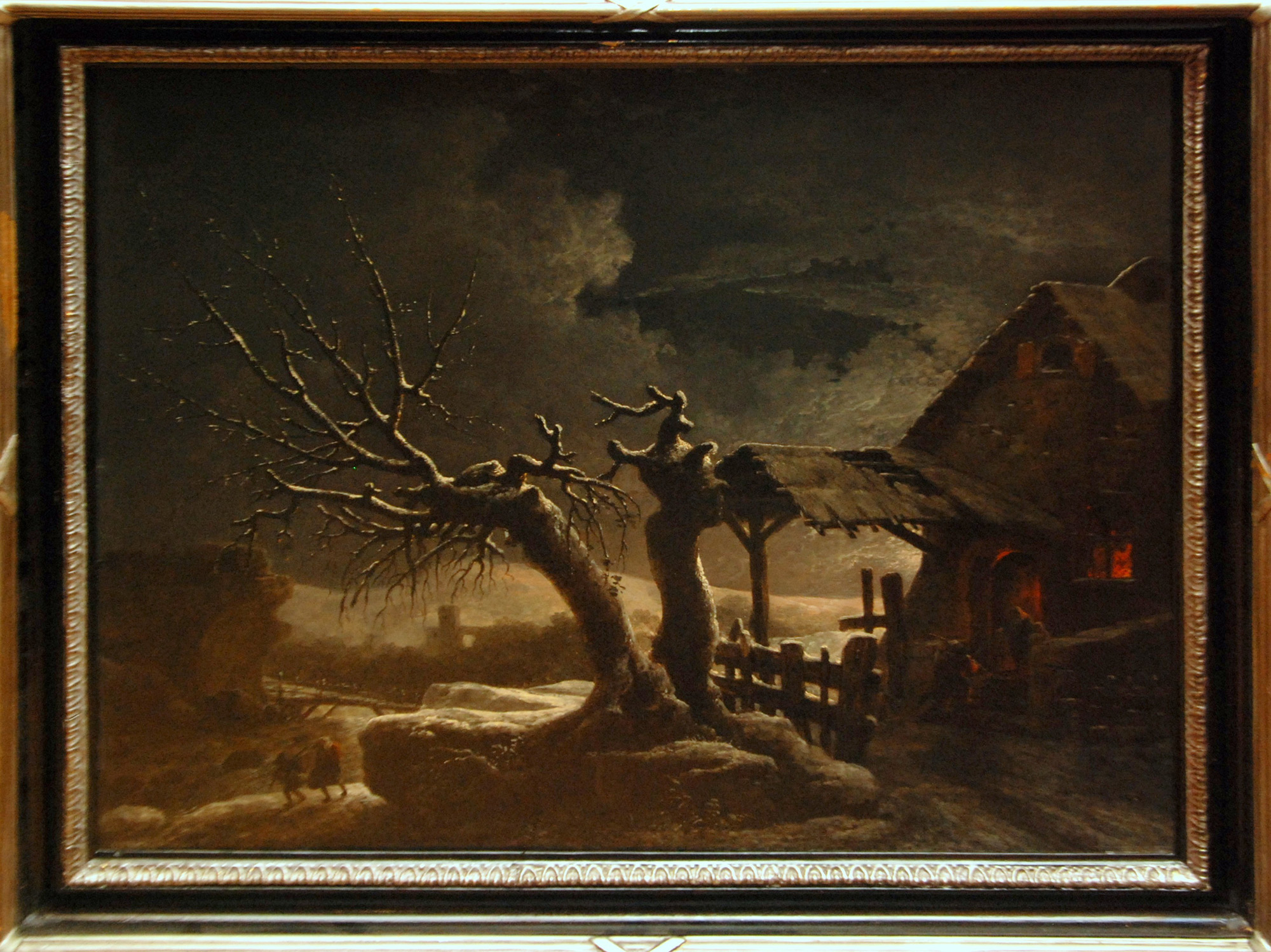 Cesar Van Loo olio su tela 'paesaggio notturno innevato' firmato in basso a destra
