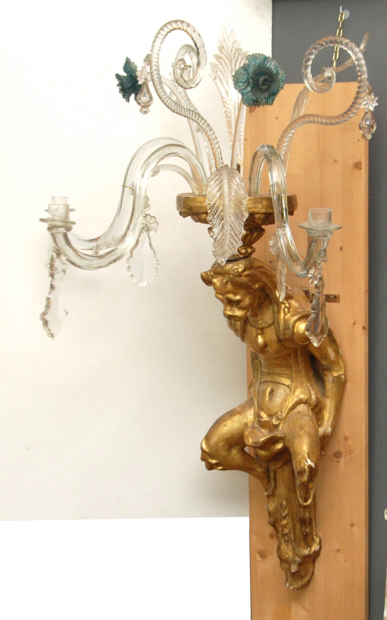 Coppia di appliques in cartapesta dorata e vetro sec.XVIII