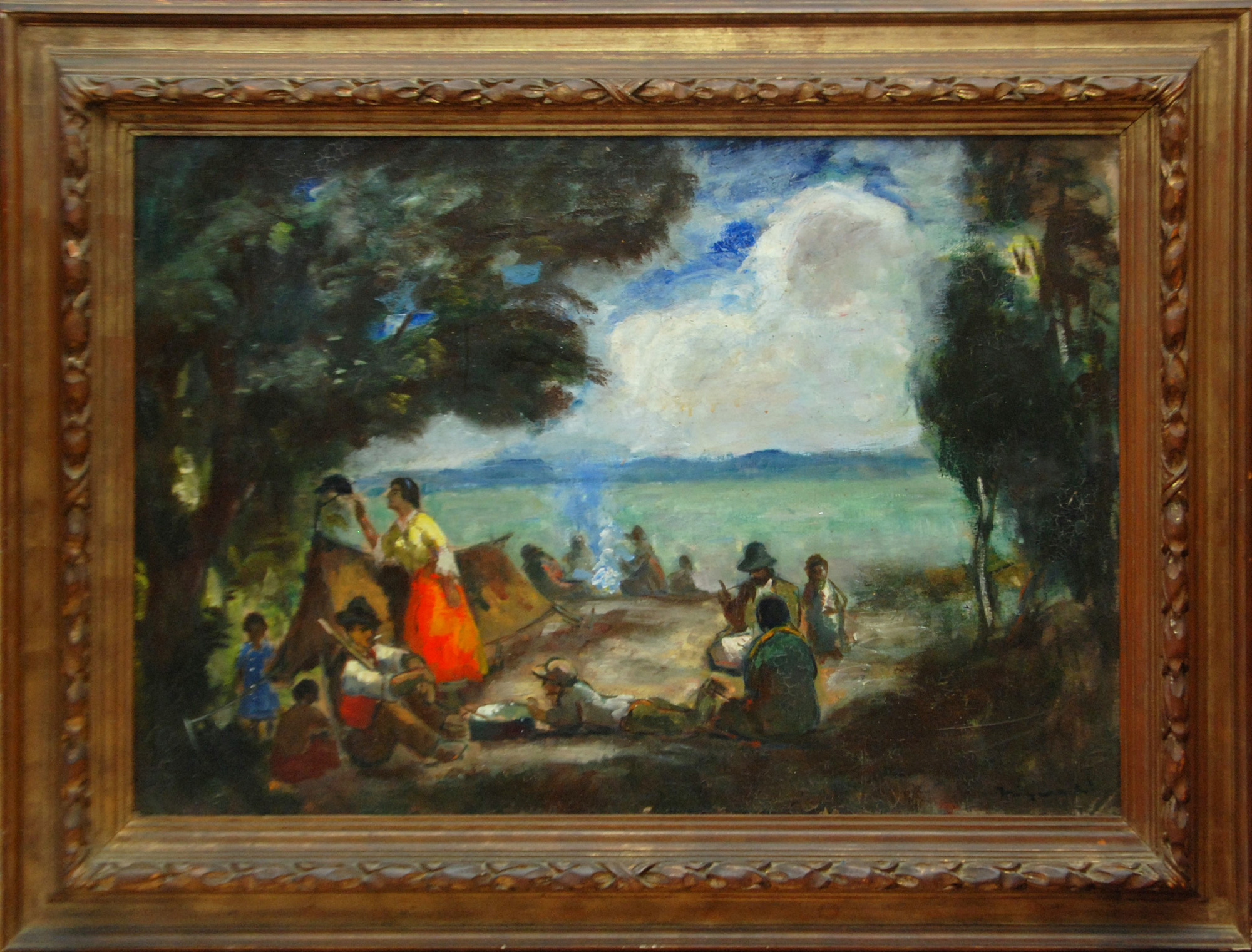 Bela Ivany Grunwald 1867 Som 1940 Budapest olio su tela 'accampamento' firmato in basso a dx