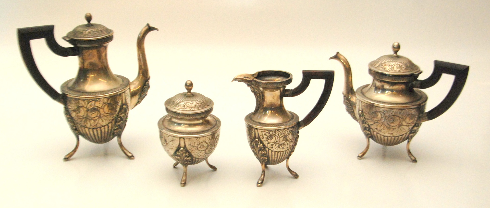 servizio da the in argento 4 pezzi finemente decorato punzone 800 non cerchiato gr.2254 lordi