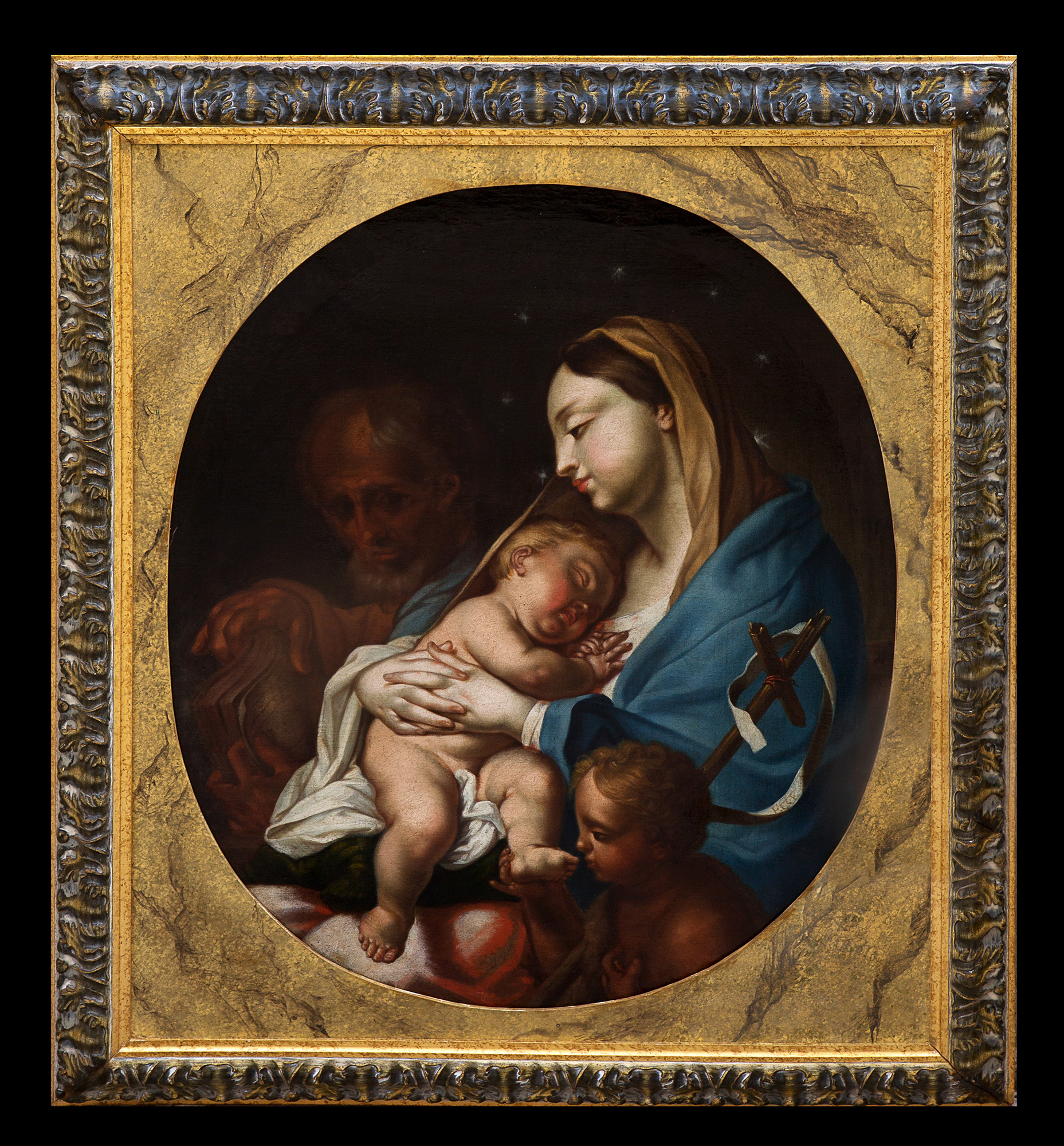 Francesco Trevisani 1656/1746 olio su tela ovale raff.sacra famiglia con San Giovannino autentica Prof. Giancarlo Sestieri