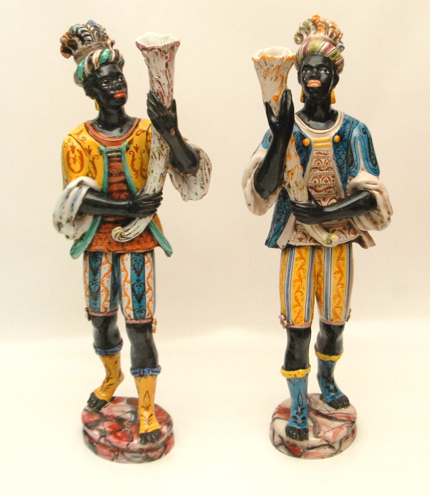 Precedente Lotto 117 Successivo Casa d'Aste Martini - C.so Cavallotti 76, 18038 Sanremo Asta antiquariato, dipinti, design e arte orientale Sessione unica giovedì 9 giugno 2022 ore 15:00 (UTC +01:00) OGGETTISTICA coppia di mori in maiolica dipintacm.x h. 91