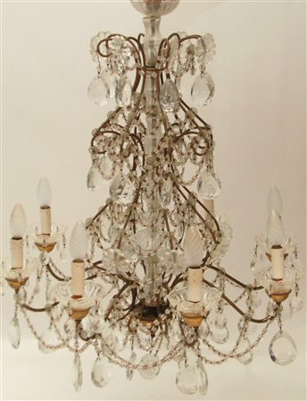 Precedente Lotto 169 Successivo Casa d'Aste Martini - C.so Cavallotti 76, 18038 Sanremo Asta antiquariato, dipinti, design e arte orientale Sessione unica giovedì 9 giugno 2022 ore 15:00 (UTC +01:00) LAMPADARIO lampadario in metallo a vetro a 8 lucidm 65 cm