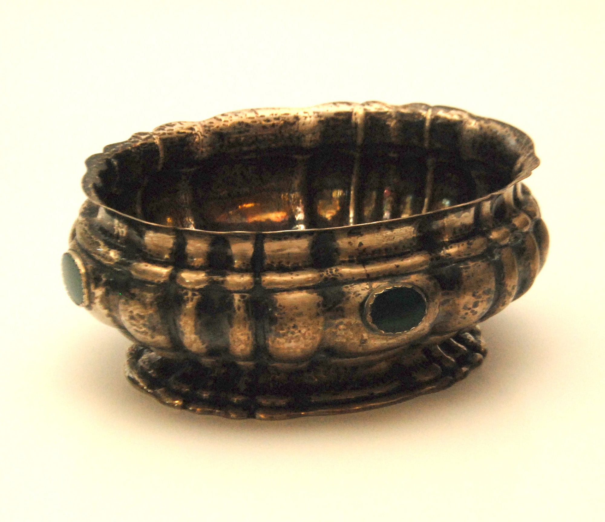 Robbiani Carlo attivo a Milano dal 1935 al 1971 centrotavola in argento con inserto in pasta di vetro verde titolo 800 punzone del fascio 206 MI
