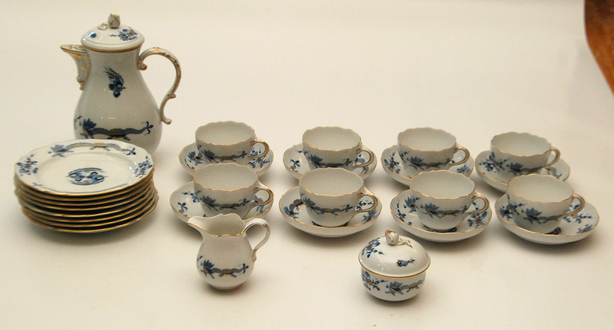 Meissen servizio da the in porcellana con decoro blu e oro per 8 persone