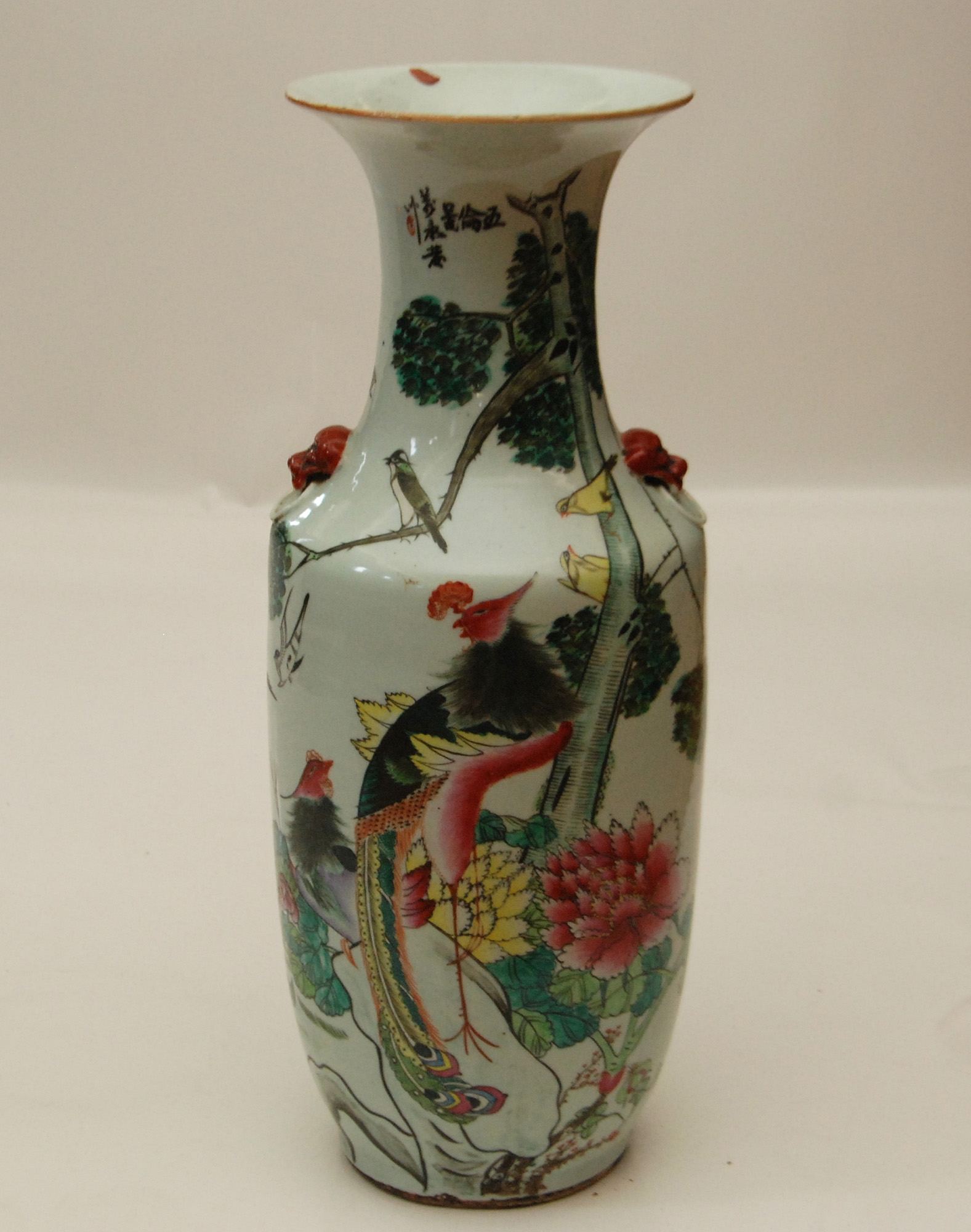 Cina vaso in porcellana decorato con motivi vegetali e volatili