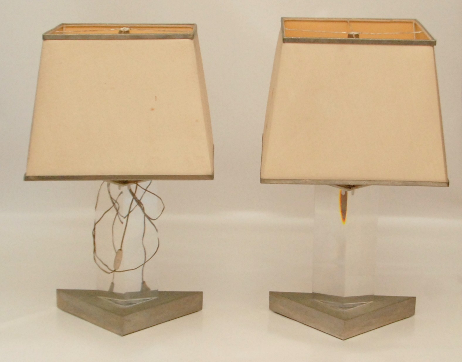 Precedente Lotto 332 Successivo Casa d'Aste Martini - C.so Cavallotti 76, 18038 Sanremo Asta antiquariato, dipinti, design e arte orientale Sessione unica giovedì 9 giugno 2022 ore 15:00 (UTC +01:00) LAMPADA coppia di lampade da tavolo in plexiglass e metallocm.x h. 73