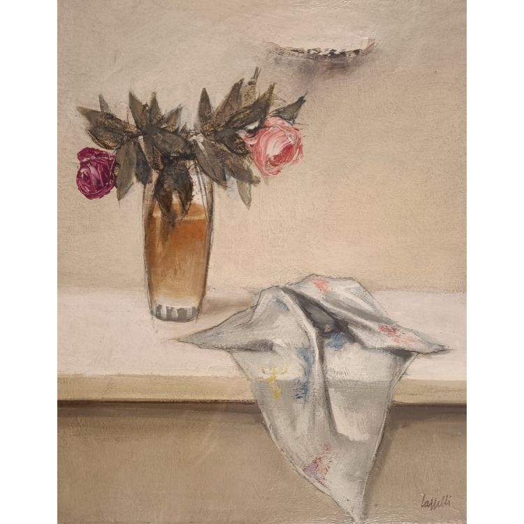 CAPPELLI GIOVANNI Cesana (Fc) 1923 Due rose Olio su tela 50,00x40,00x2,00...