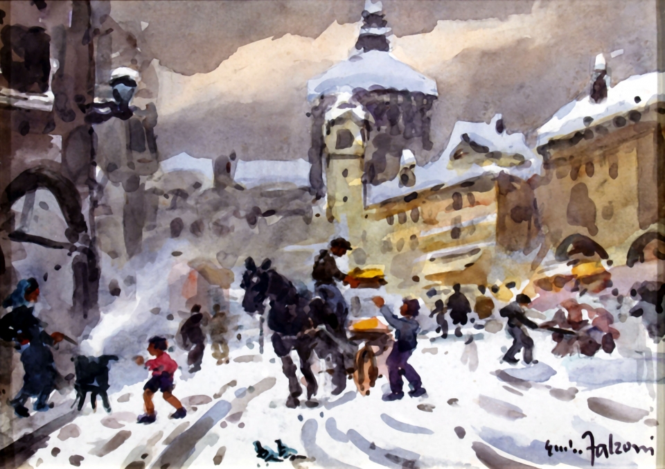 FALZONI GIULIO (Marmirolo 1900 - Milano 1978) "Il vecchio mercato di Pavia"...