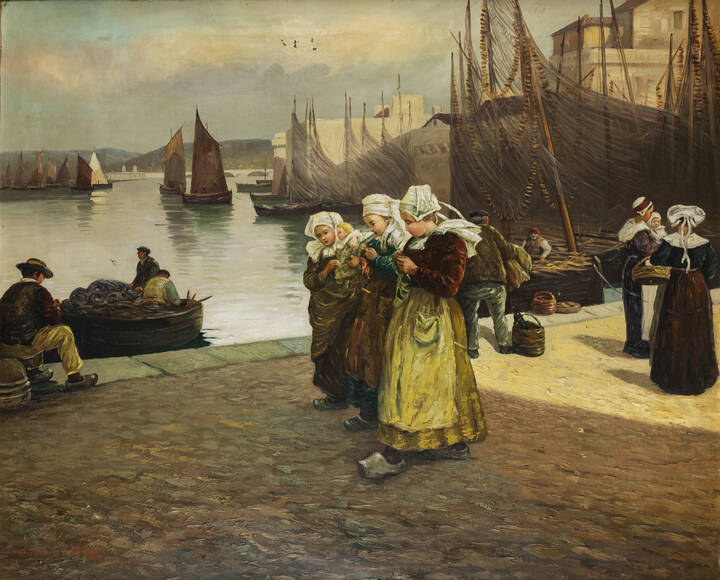 LIONELLO BALESTRIERI<BR>Cetona (SI) 1872 - 1958<BR>"Figure al porto" periodo bretone