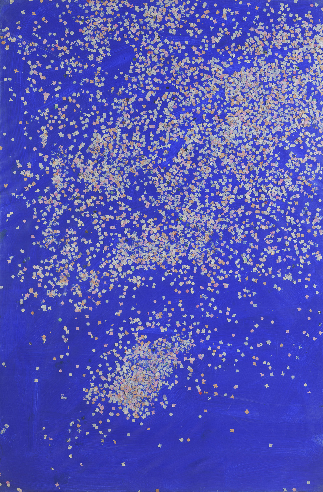 Coriandoli su tela ad acrilico color azzurro, cm. 120 x 80