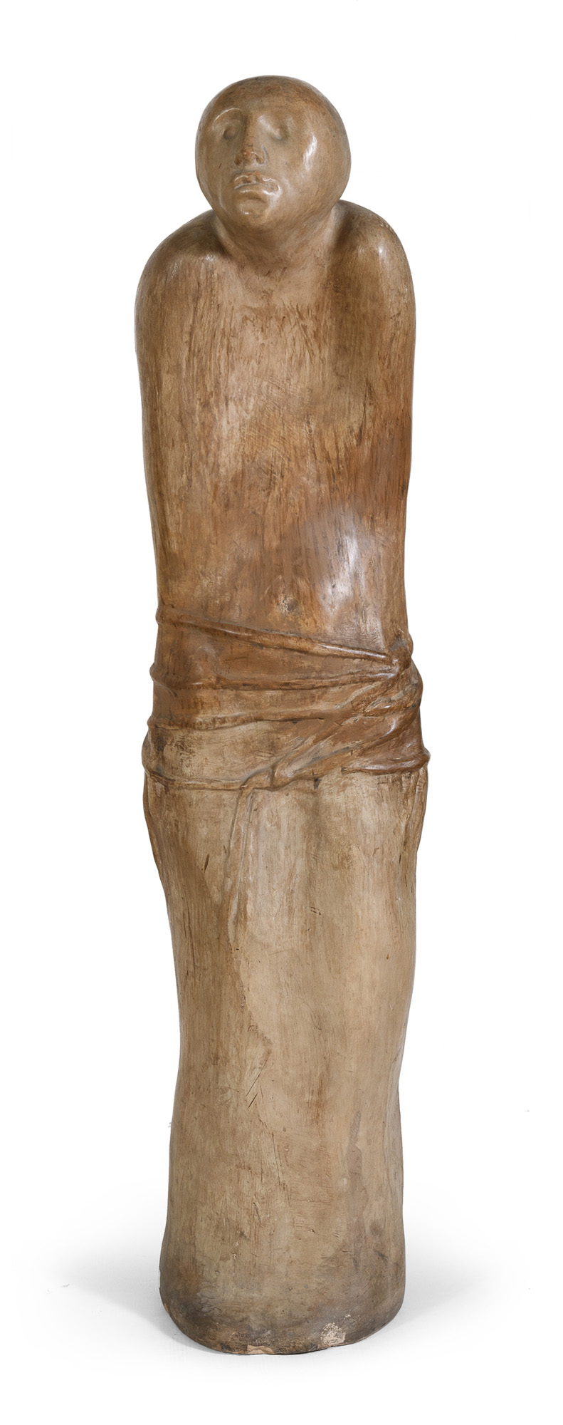 Scultura in terracotta patinata, cm. 111 x 26 x 22