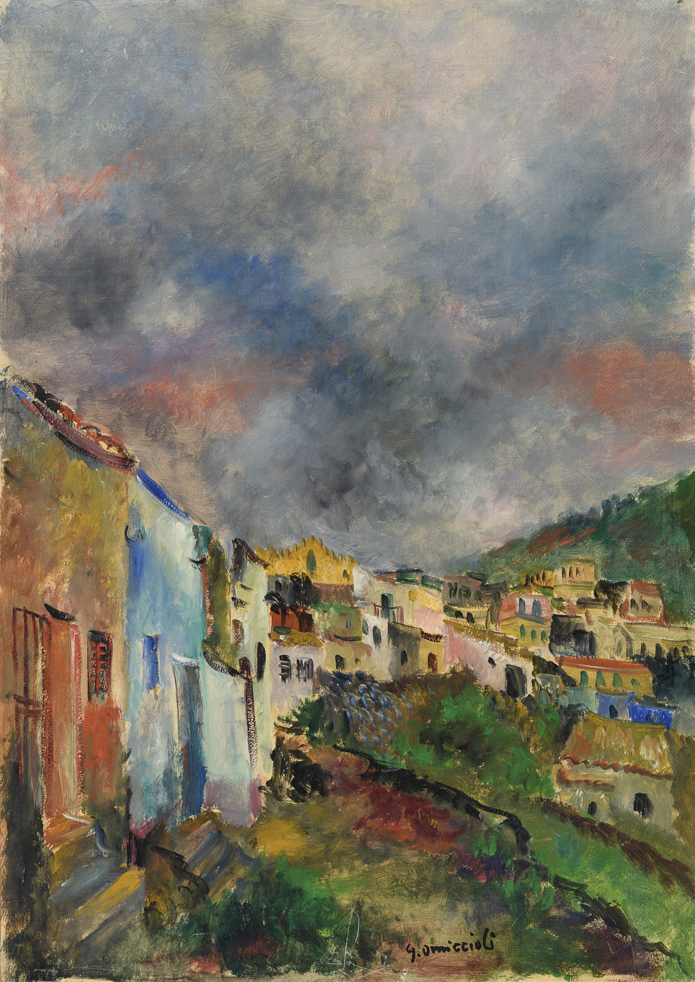 DIPINTO CASE A USTICA DI GIOVANNI OMICCIOLI, 1957