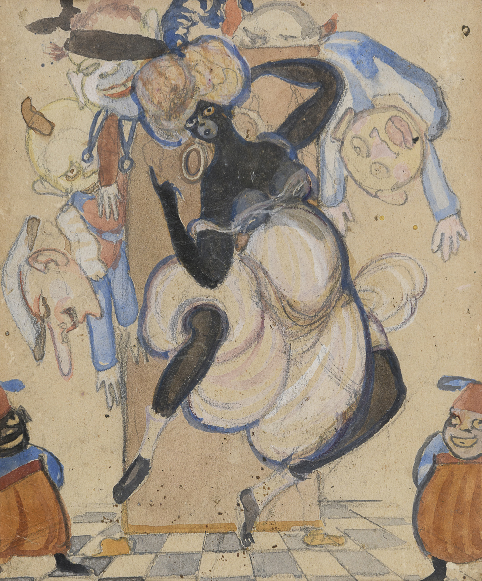 Olio, matita, pastelli e acquerello su carta applicata su cartoncino, cm. 19,5 x 16