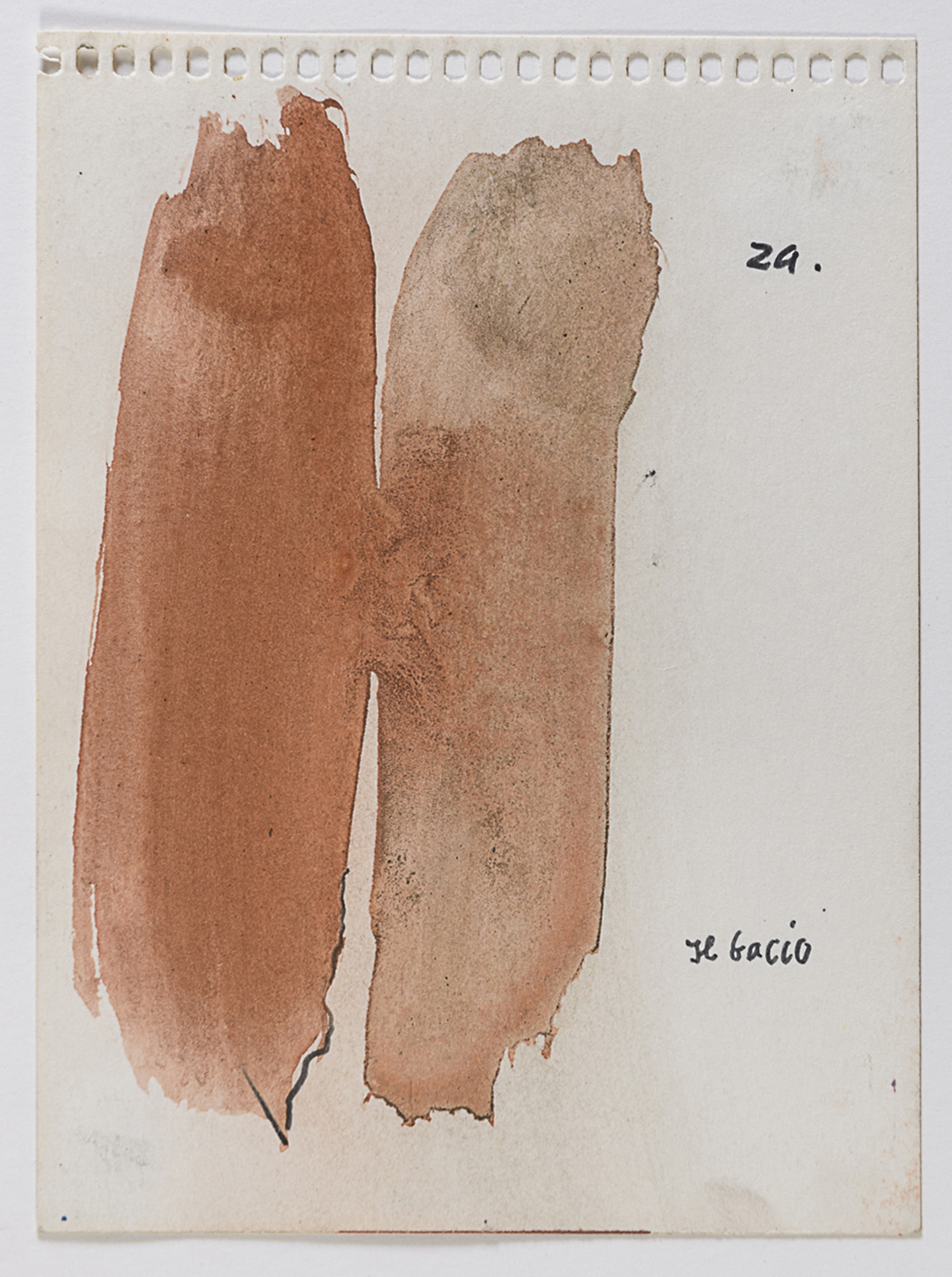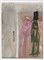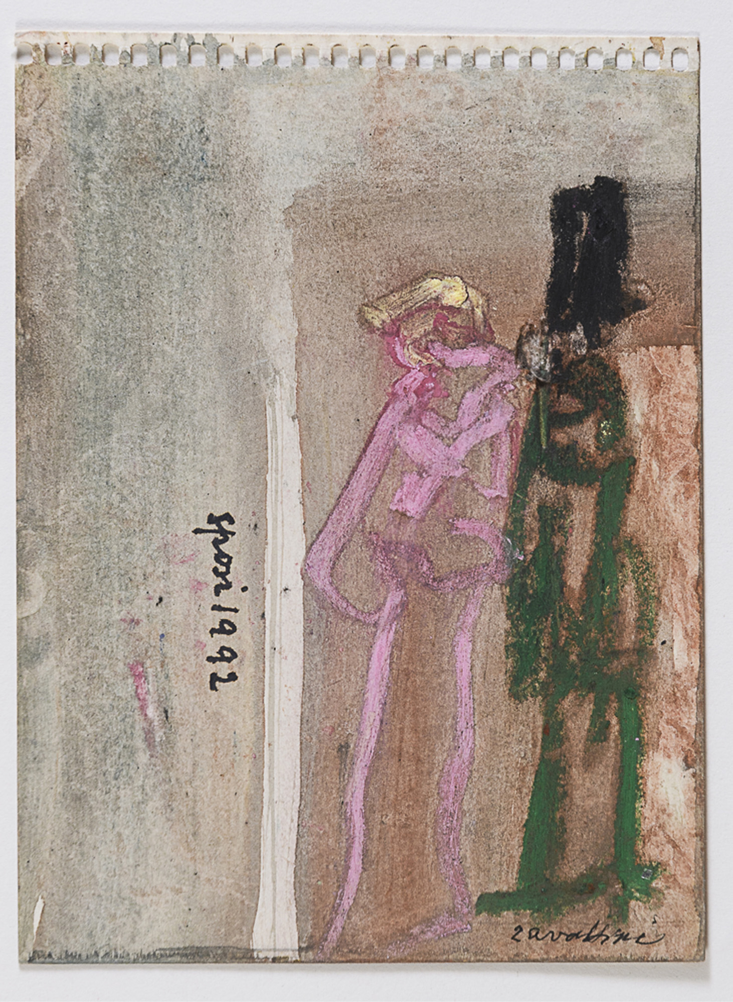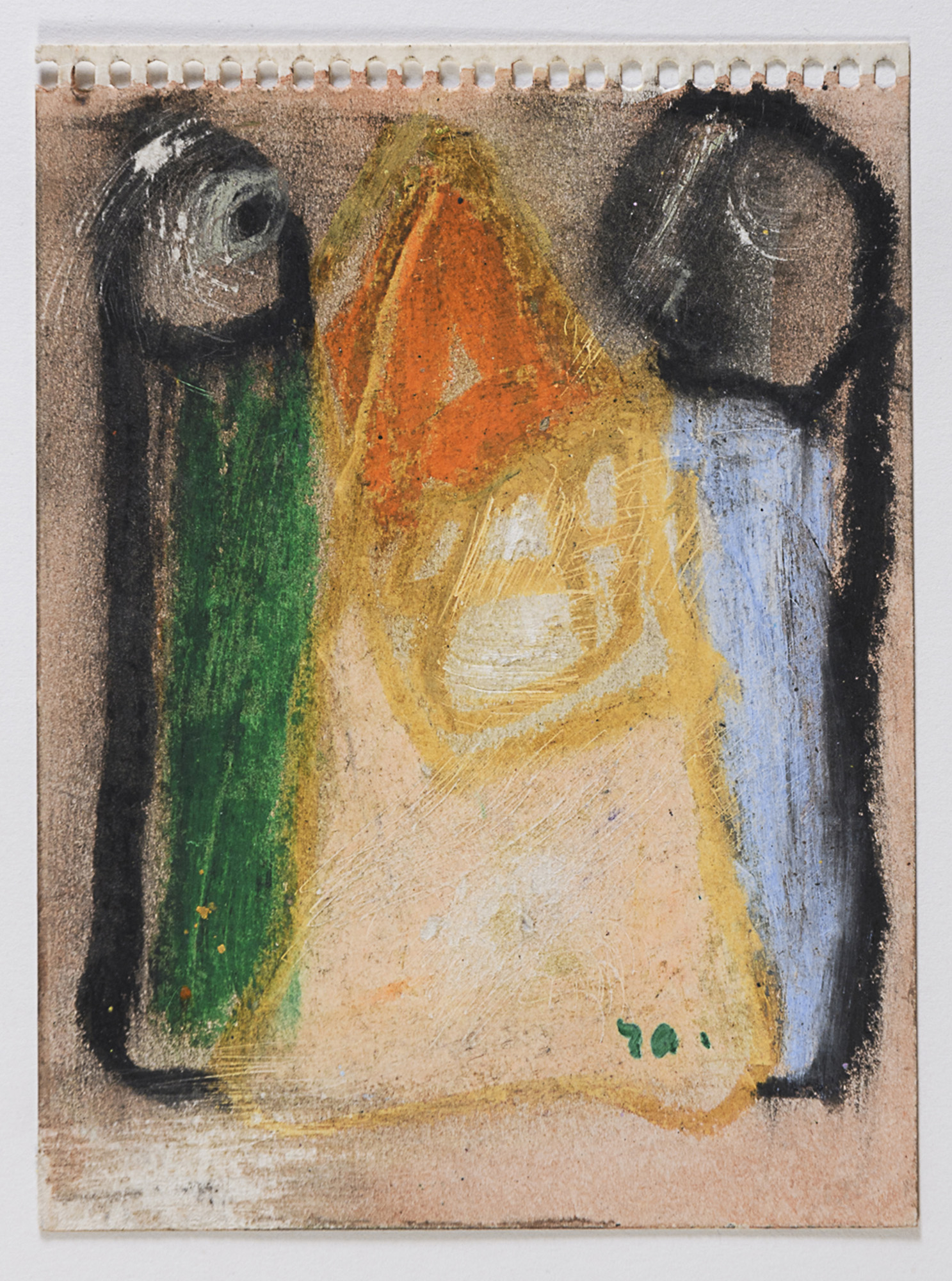 Cinque tecniche miste su foglio di block notes, cm. 16,5 x 12