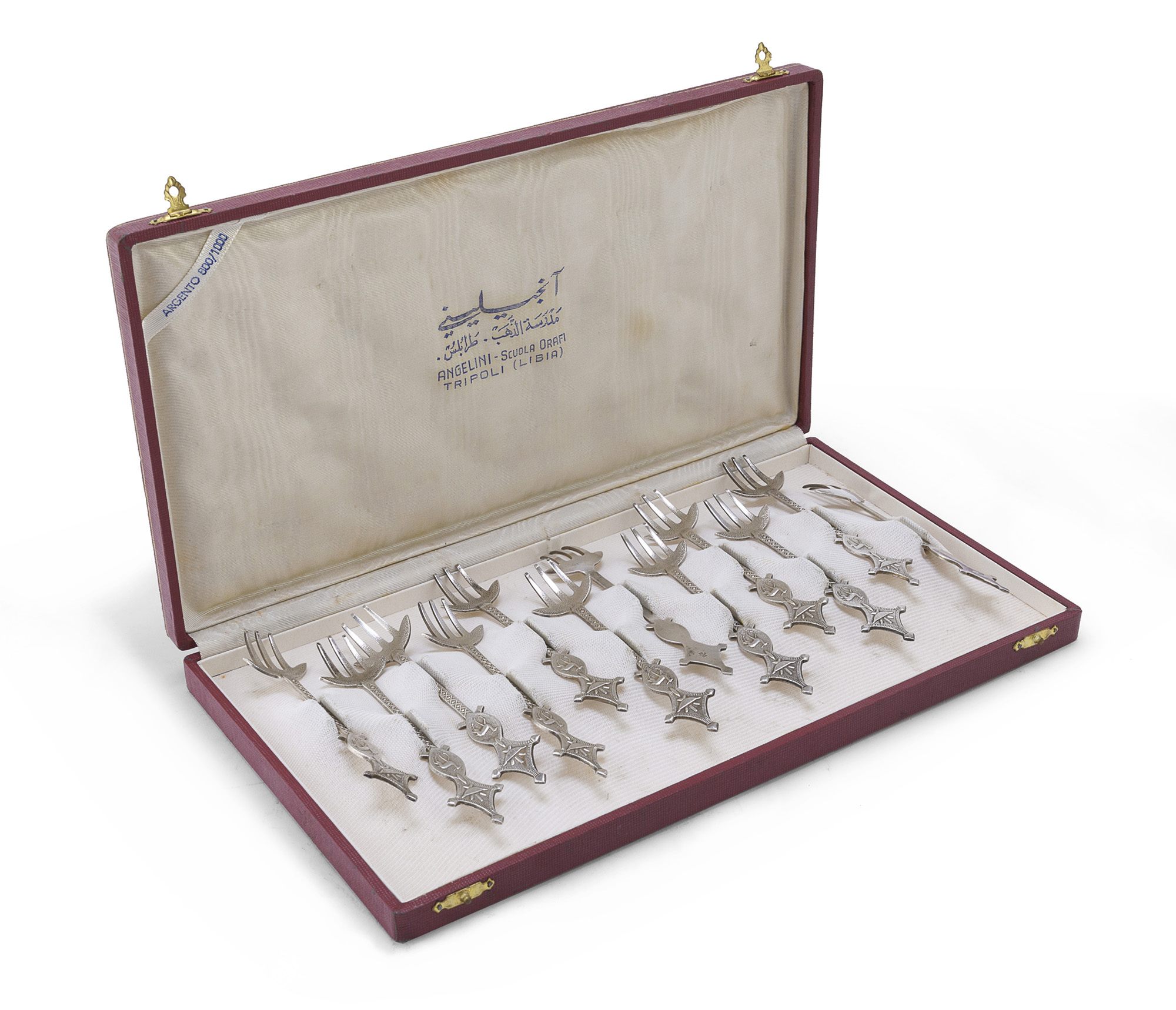 DODICI FORCHETTINE IN ARGENTO, TRIPOLI LIBIA 1940 ca.