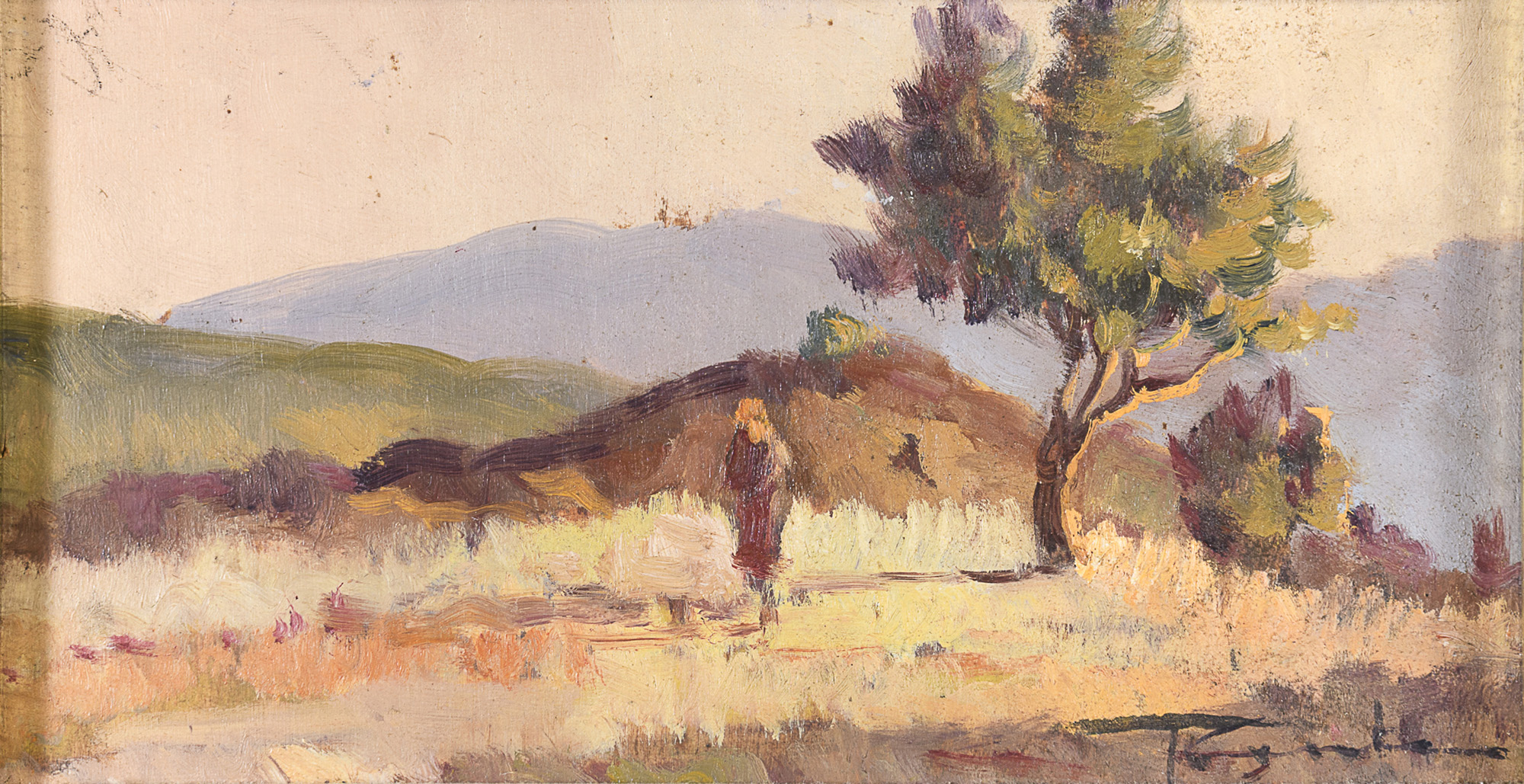 Lotto 242 | DIPINTO PAESAGGIO CON CONTADINA