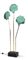 a tre steli a canna di bambù con paralumi in stoffa verde a foglie. Base rettangolare in plastica nera.