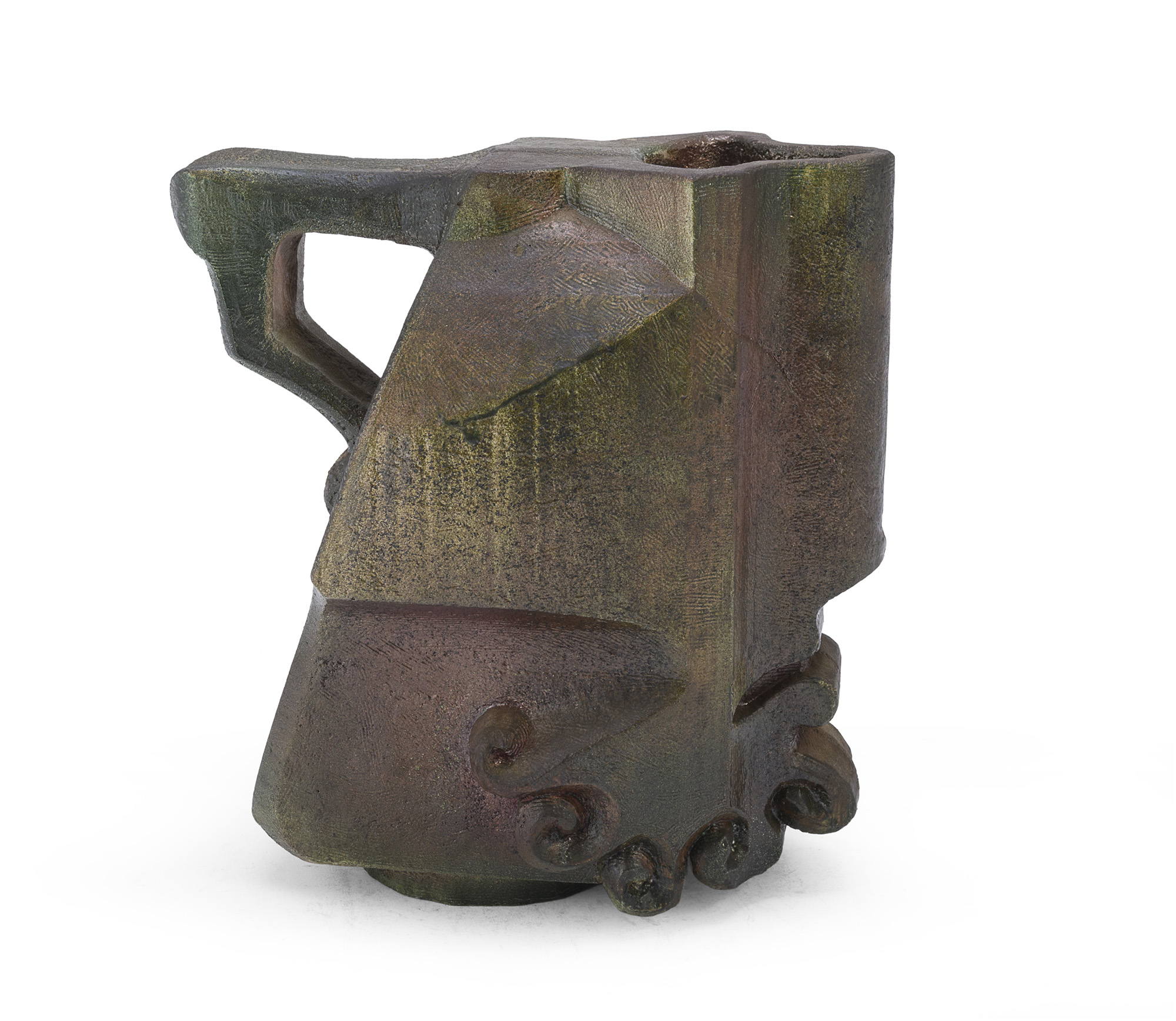 in maiolica smaltata a finto metallo, a sagoma antropomorfa.