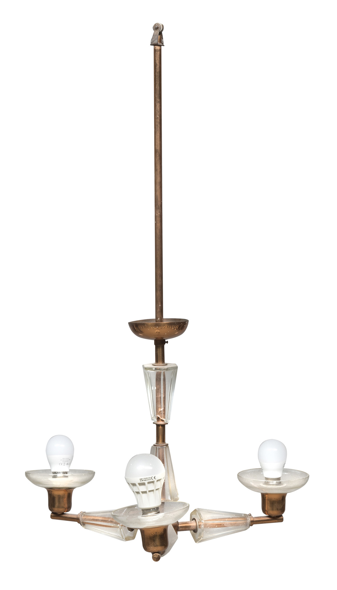 in ottone ramato con prismi in vetro tagliato. Tre braccia.