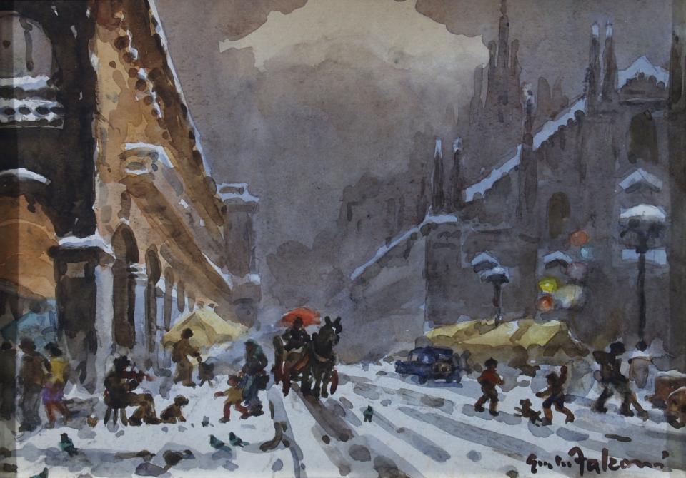 FALZONI GIULIO (Marmirolo 1900 - Milano 1978) "Vecchia Milano, Piazza Duomo"...
