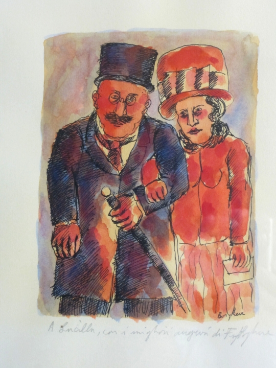 BORGHESE FRANZ (Roma 1941 - Roma 2005) "Coppia" Acquerello su cartone cm. H:...