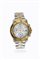 Cassa in acciaio con lunetta dorata e fondello a vite. Quadrante bianco con indici luminescenti, datario al 3, secondi continui al 6,12 ore al 9 e 60 minuti al 12. Movimento al quarzo