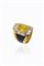 Particolare anello in oro giallo, firmato "Marina B", a fascia, al centro diamante taglio ottagonale fancy irradiato di ct 3,51 ed inserto in onice. Diamanti taglio trapezio a decoro per totali ct 2,0 ca