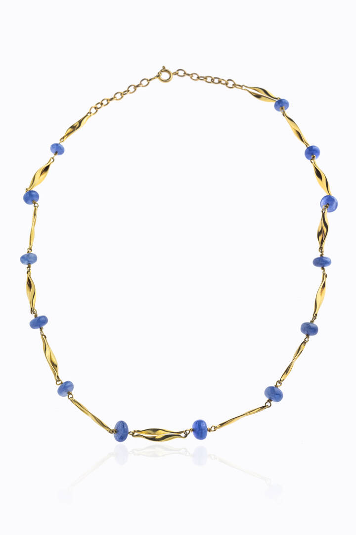 composta da segmenti in oro giallo alternati a dischi di zaffiri