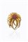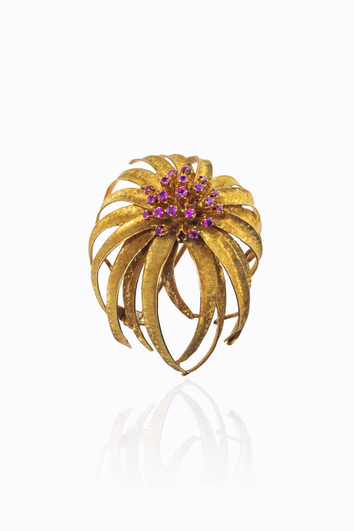 in oro giallo, a cespuglio, con foglie satinate ed al centro piccoli rubini