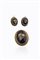 composta da coppia di orecchini e spilla in oro a bassa caratura e argento vermeille, XIX secolo, con base in onice (difetti) decorati con tralci d'uva in perline (alcune mancanti)