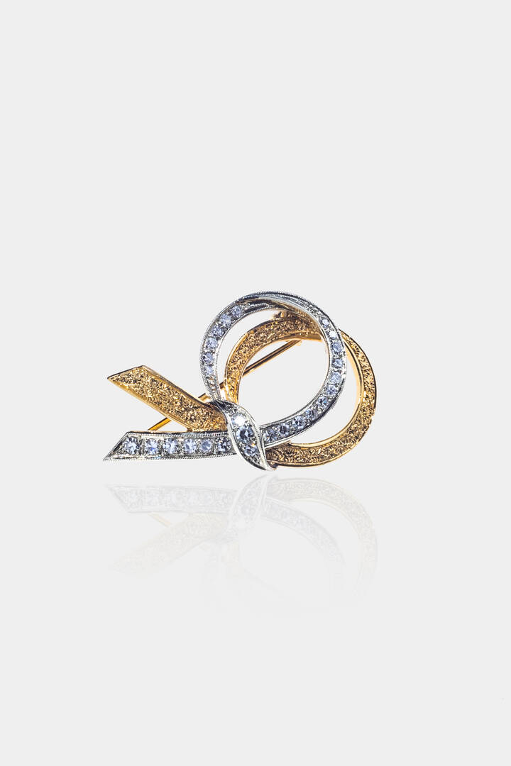 in oro bianco e rosa, a intreccio, con diamanti taglio 8/8 per totali ct 0,30 ca
