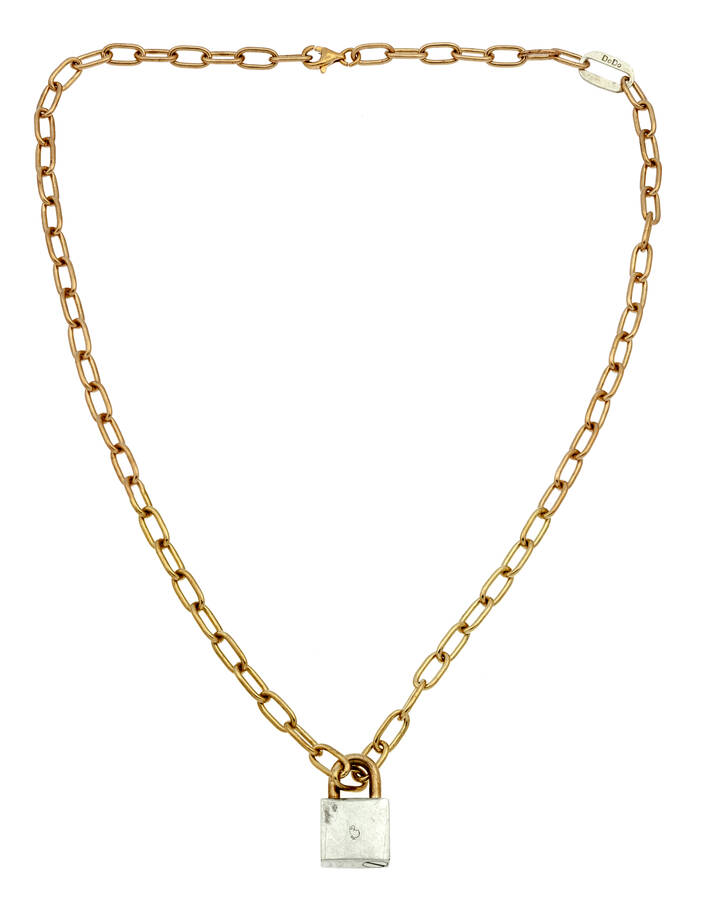 Girocollo in oro 9 Kt, ad anelli ovalizzati, con ciondolo a forma di lucchetto in argento 925/1000, linea "Dodo"