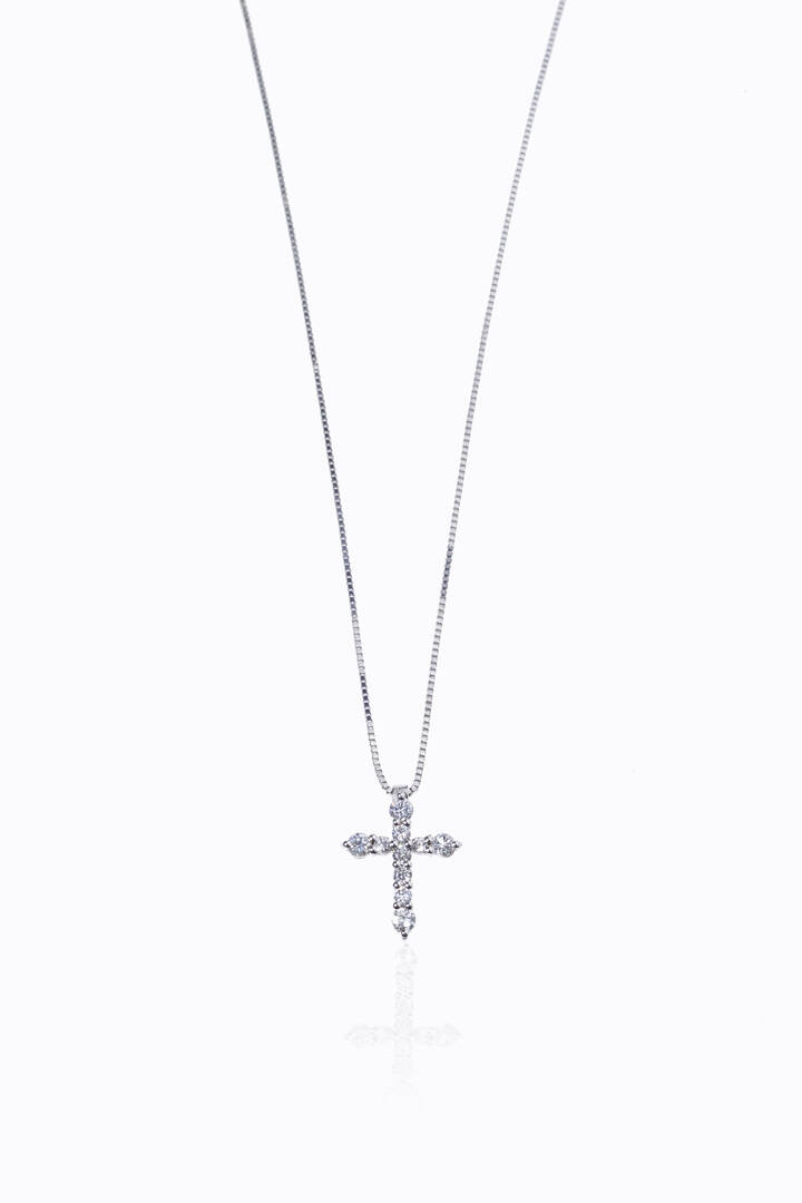 in oro bianco, a forma di croce, con diamanti taglio brillante per totali ct 0,51 ca, probabile colore G-H, purezza IF-VVS