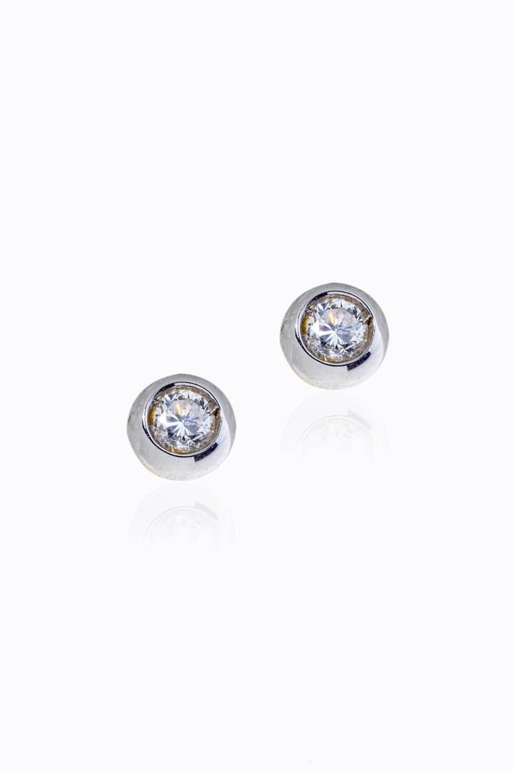 in oro bianco, a lobo, con due diamanti taglio brillante per totali ct 0,15 ca