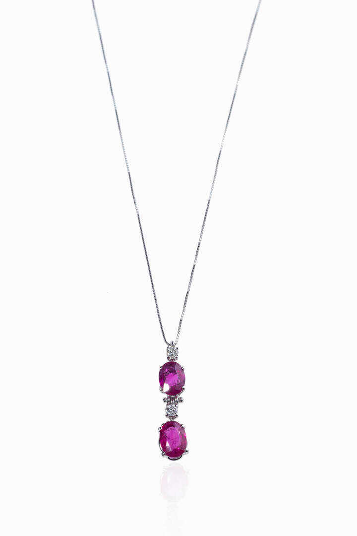 in oro bianco, con due rubini taglio ovale per totali ct 1,20 ca intervallati da due diamanti taglio brillante per totali ct 0,10 ca
