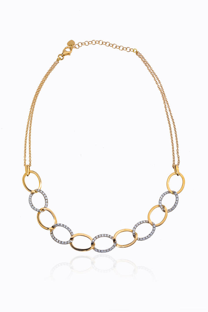 in oro rosa, composto nella parte centrale da anelli ovalizzati lisci alternati ad anelli in diamanti taglio brillante per totali ct1,06 ca, probabile colore G-H, purezza IF-VVS