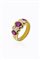 in oro giallo, a fascia, con due diamanti taglio ovale per totali ct 1,10 ca, alternati a rubini taglio ovale per complessivi ct 1,30 ca