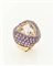 in oro rosa, sommità con goccia di morganite rosa (scheggiature), contornata da diamanti taglio brillante per totali ct 0,20 ca e pavé di zaffiri di colore rosa