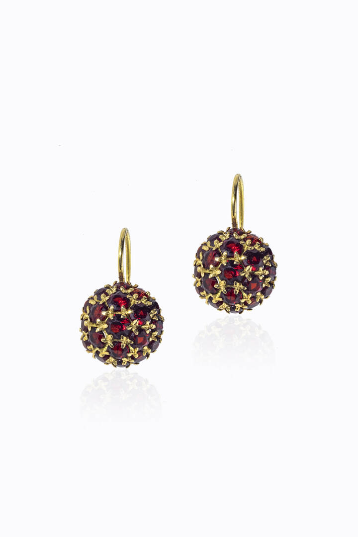 in oro giallo, a monachella, a semisfera con granati taglio rotondo