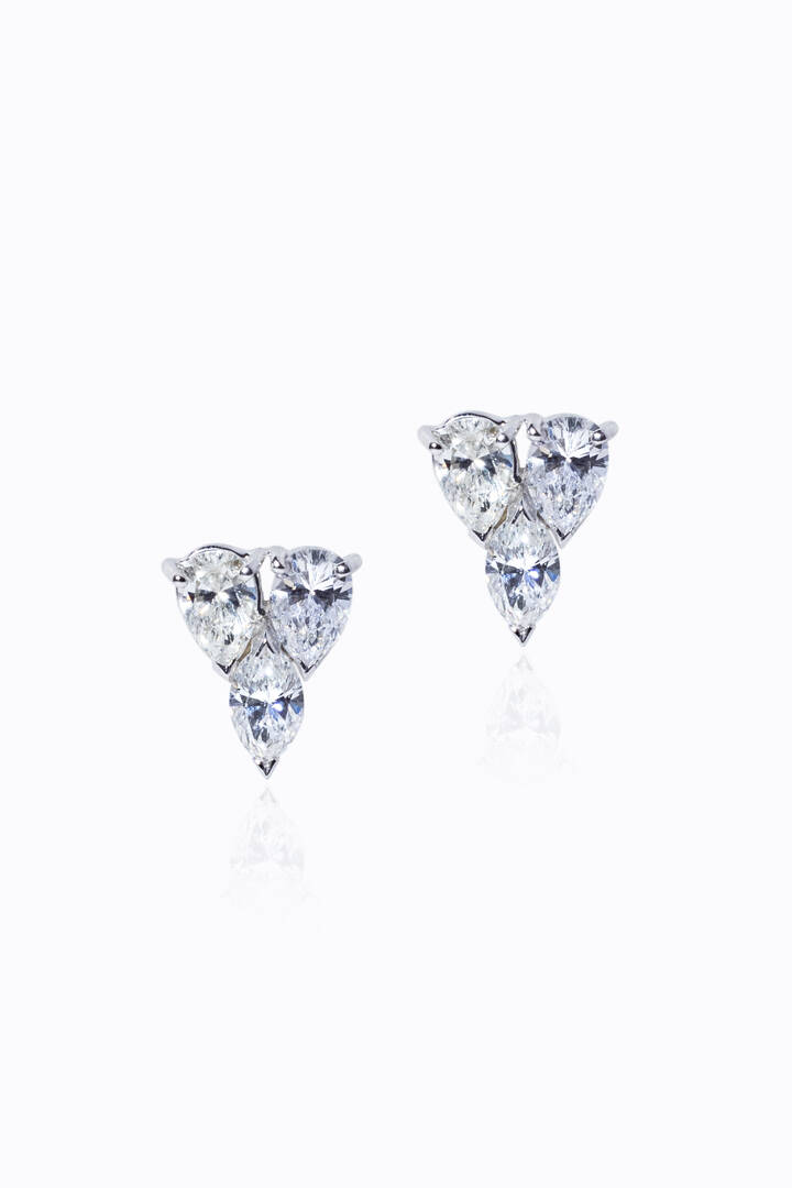 in oro bianco, a lobo, con sei diamanti taglio navette per totali ct 1,21 ca, probabile colore G-H, purezza IF-VVS