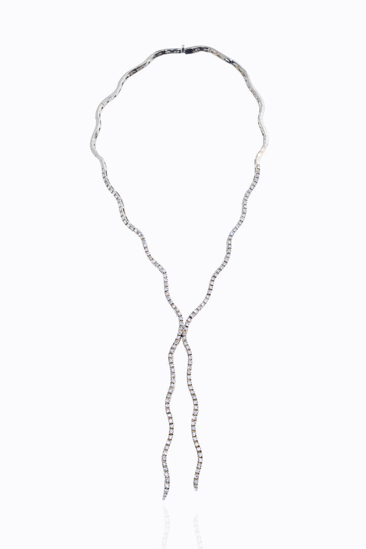semirigido, in oro bianco, modello tennis, composto da segmenti mossi, con diamanti taglio brillante per totali ct 3,0 ca