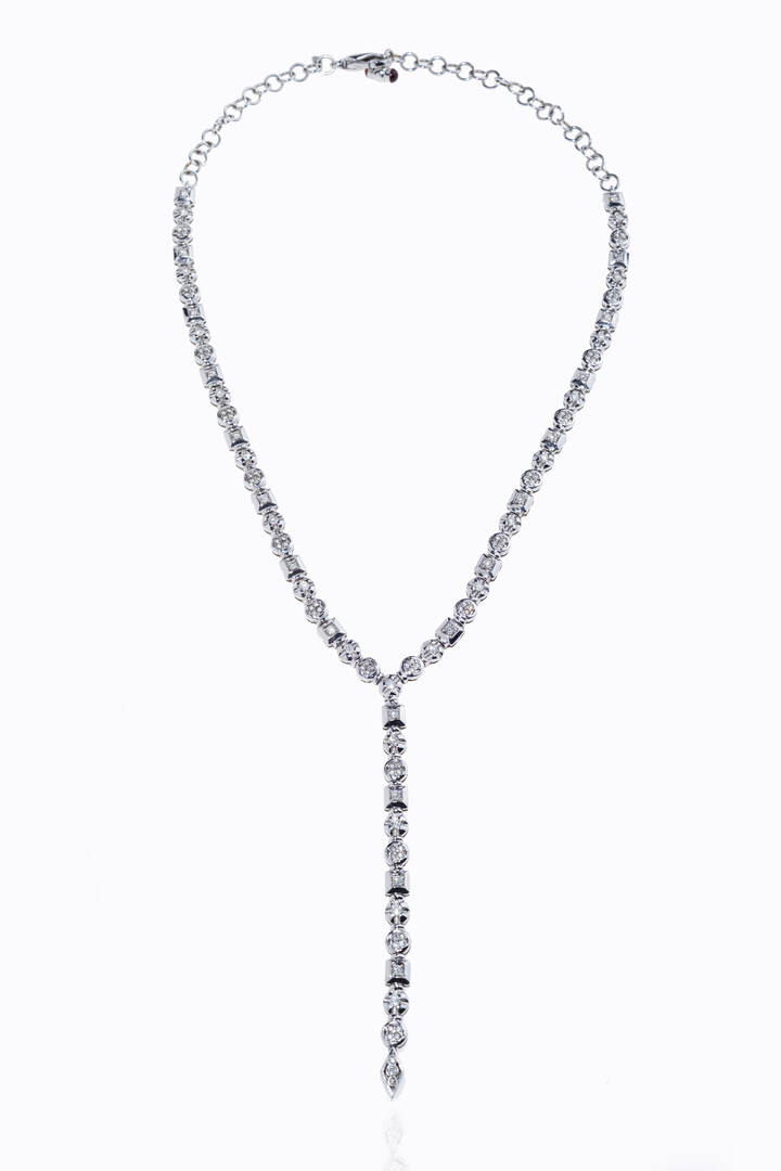 Girocollo in oro bianco, firmato "Legnazzi", composto da elementi rigidi tondi e quadrati alternati con diamanti taglio brillante per totali ct 1,25ca
