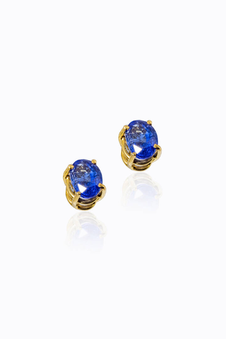 in oro giallo con due zaffiri Ceylon taglio ovale per totali ct 1,20 ca