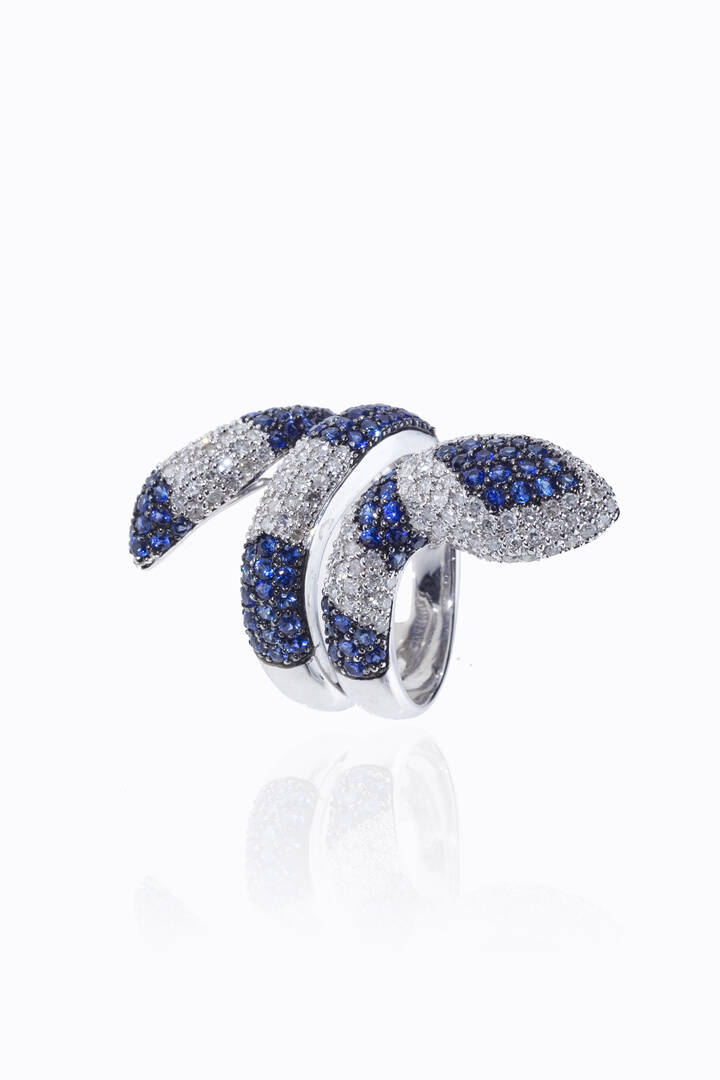 in oro bianco, a forma di serpente, con zaffiri taglio rotondo per totali ct 2,50 ca e diamanti taglio 8/8 per totali ct 1,20 ca