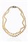 composto da due fili di perle giapponesi a scalare dal diam di mm 5,4 a 8,8 ca . Chiusura ovale in oro bianco con perlina e due rubini